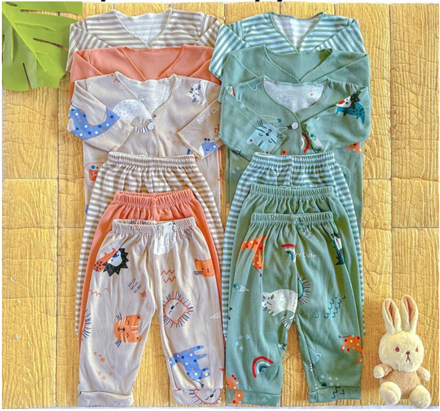 Stelan baju panjang baju celana bayi newborn polos